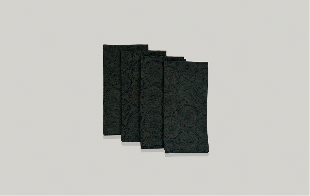 Our block printed napkin is hand printed on a cotton/linen textile. Sold in a set of four.