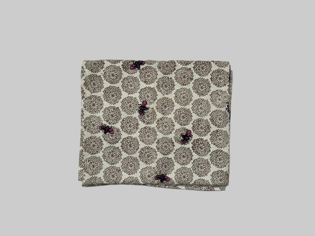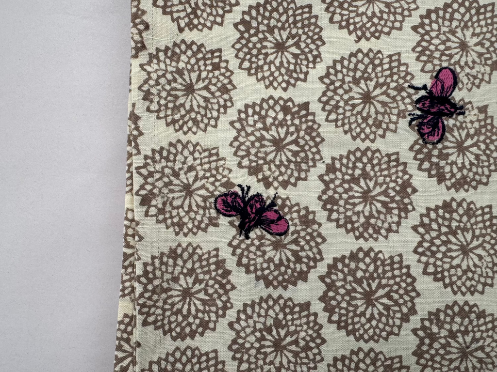 Our embroidered tablecloth is an artistic combination of hand block printing and embroidery.