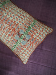 Our block printed pillow features hand dyed cotton/linen fabric with contrast piping and a hidden zipper closure along the seam.