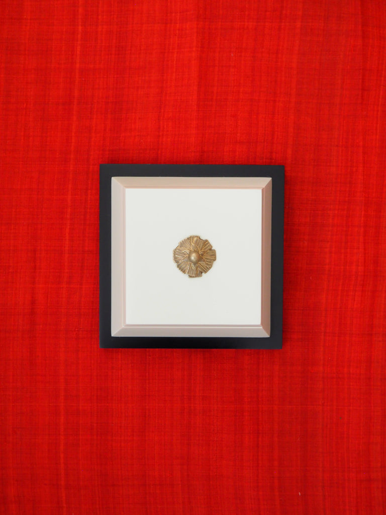 Textile: Dot print on handwoven silkMaterials: White lacquer, silk, bronzeSize: 2.5 x 7 x 7 in